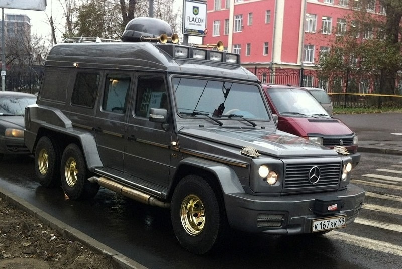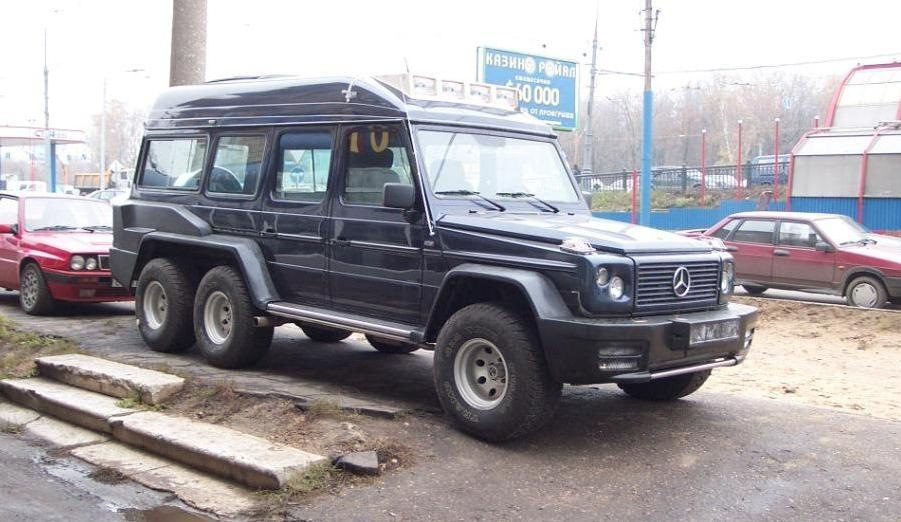Несмотря на то, что трехосные «Гелики» в основном делались для ближневосточных клиентов, после распада СССР несколько экземпляров попали в Россию. Один из них – это 6-колесный G-класс с высокой крышей от Schulz, сделанный на базе Mercedes-Benz 500GE.