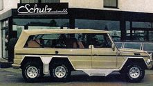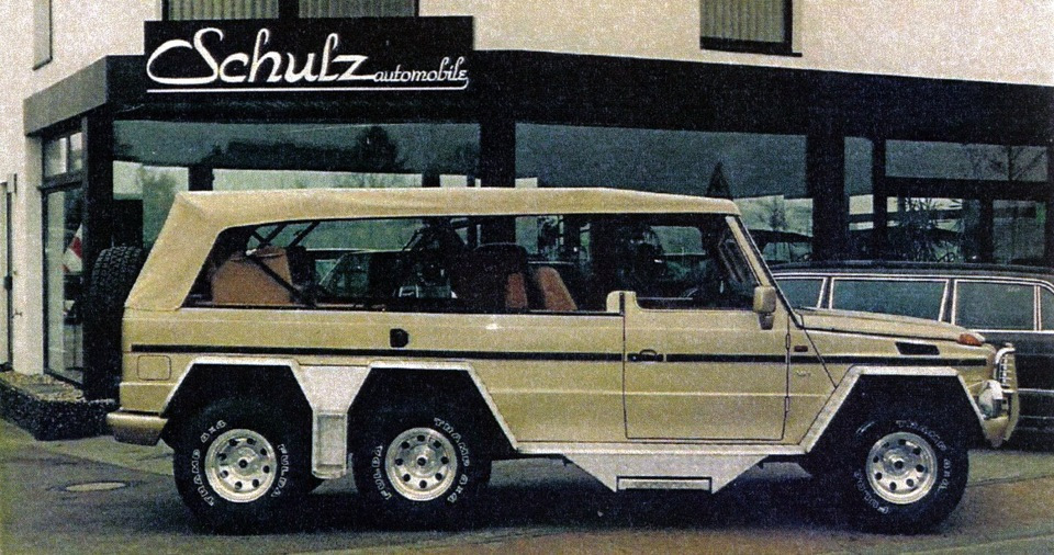 В отличие от Леотара немецкое тюнинг-ателье Schulz в 80-х и 90-х годах выпускало достаточно импозантные шестиколесные версии внедорожников Mercedes-Benz G-класса. По требованию заказчика «Гелендеваген» мог превратиться даже в уникальный кабриолет Mercedes-Benz Geländewagen 6x6 с 5.0-литровым компрессорным двигателем мощностью 325 л.с. Естественно, его сделали по заказу богатого клиента с Ближнего Востока.