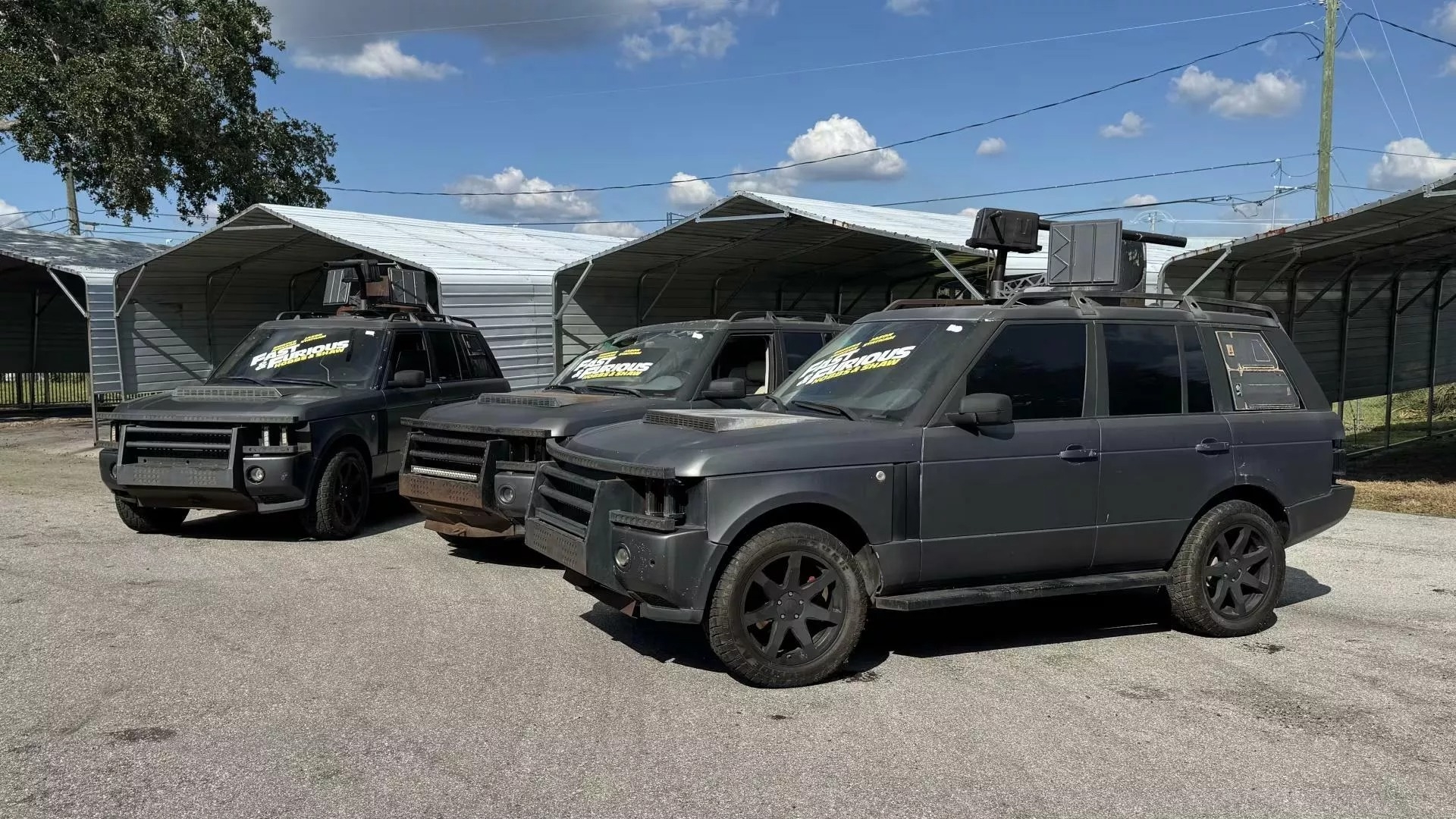 Один Range Rover имеет повреждённую стойку и разбитое лобовое стекло. На двух других установлены бутафорские пулемёты на крыше, а кузов у всех в вмятинах и царапинах.
