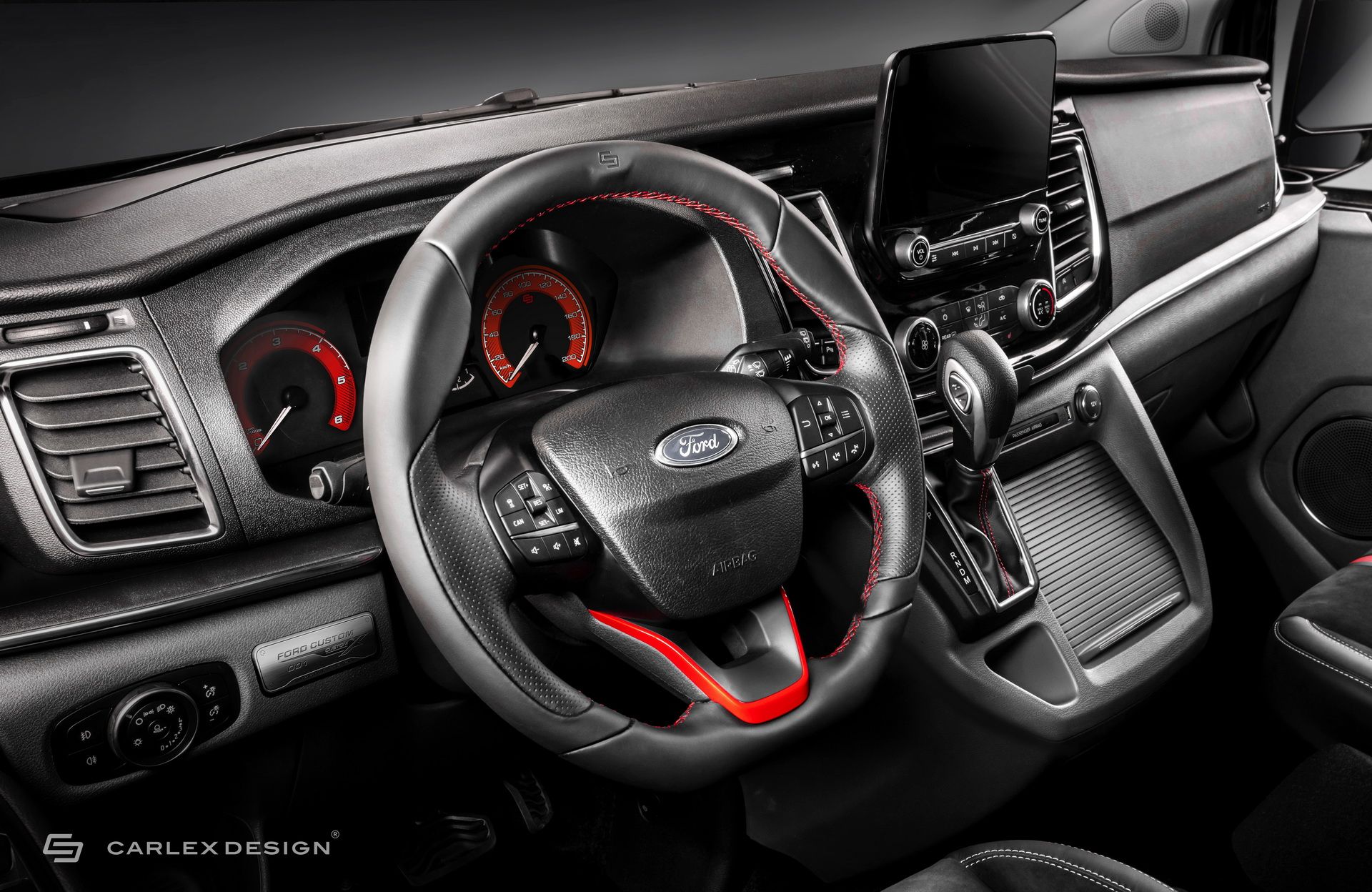 Тюнинг-ателье Carlex Design доработало микроавтобус Ford Transit Custom, добавив агрессивный обвес, новые колеса и переделанный интерьер.