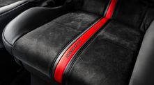 Сзади Transit Custom получил новый бампер с диффузором и встроенными выхлопными трубами с двух сторон, а также спойлер на крыше. В дизайне экстерьера присутствуют красные акценты, контрастирующие с остальной частью кузова. Образ завершают 18-дюймовые колеса, обутые в шины Michelin Pilot Sport 4 размерностью 255/45.