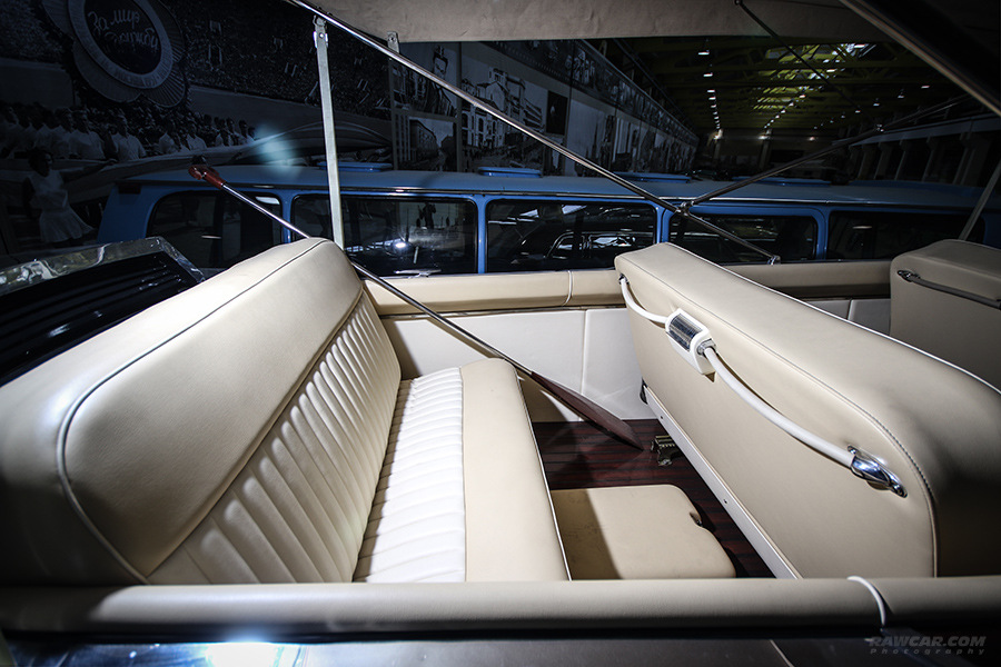 Самое интересное для нас, автолюбителей, скрывается в салоне. Попав на передний ряд сидений вы ахнете, ведь вашему взору откроется передняя панель, очень похожая на автомобили ГАЗ-21 «Волга». От автомобиля взяли рулевое колесо, панель приборов, центральную консоль с радиоприемником и даже механические часы.