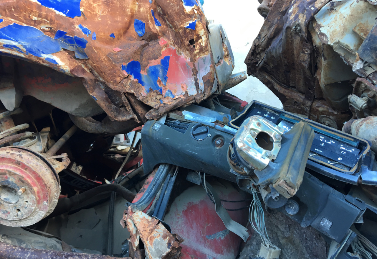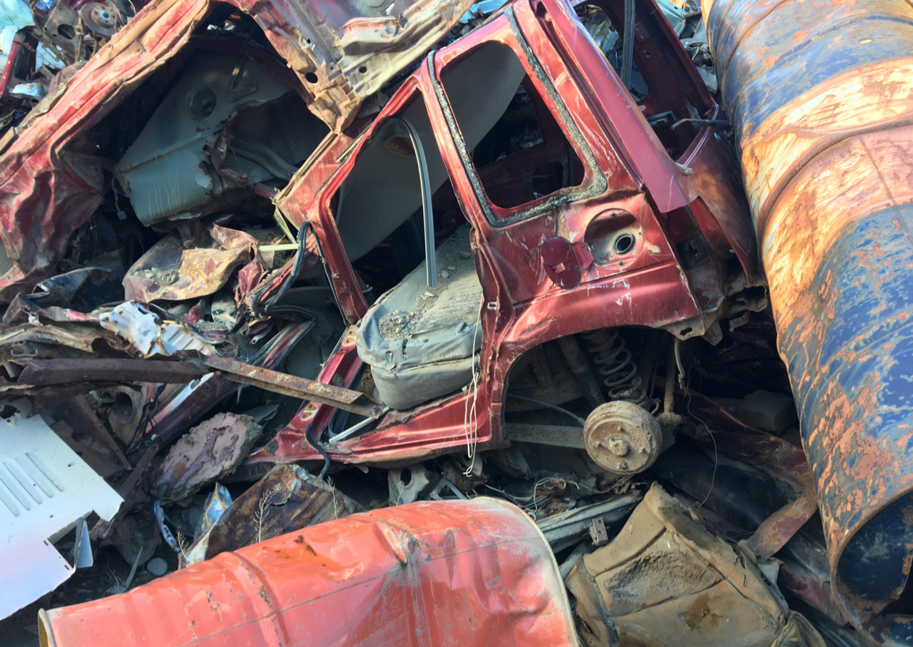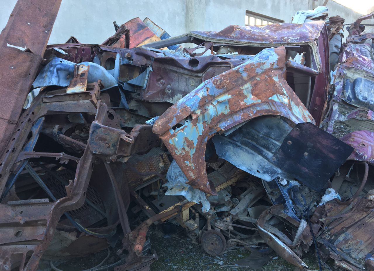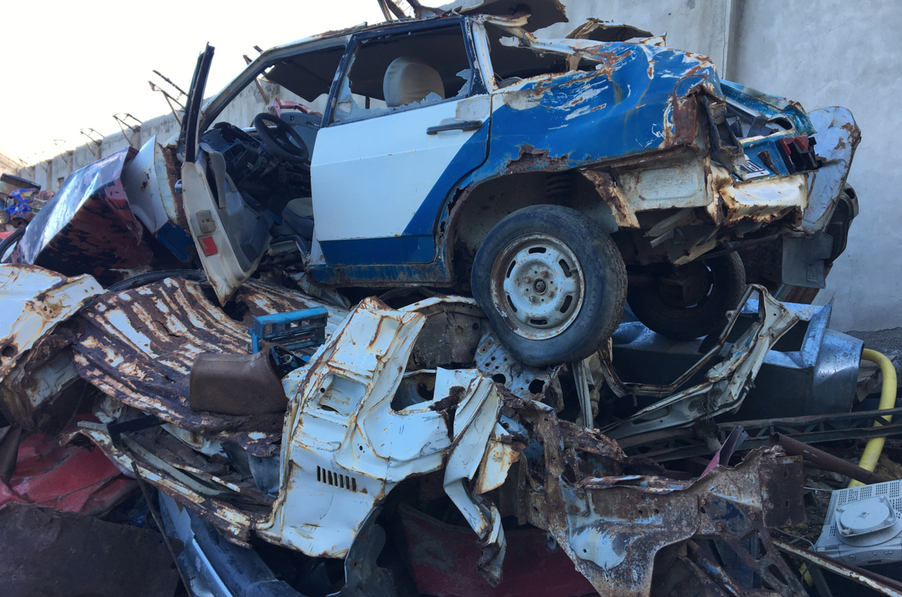 Настоящая гора металлолома. Сверху что-то очень напоминающее кузов от Toyota Corolla 90-х годов.