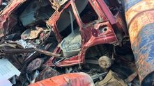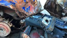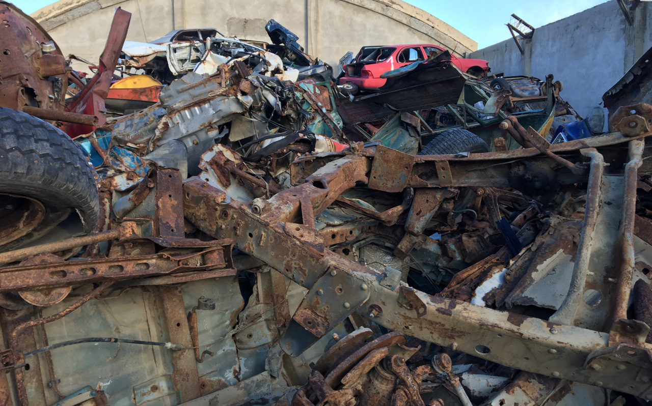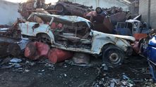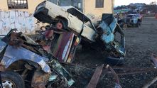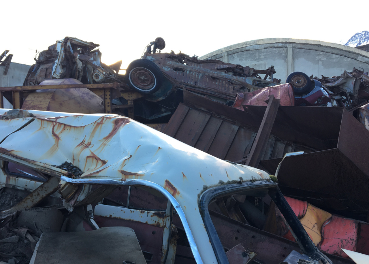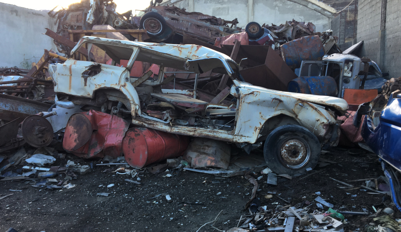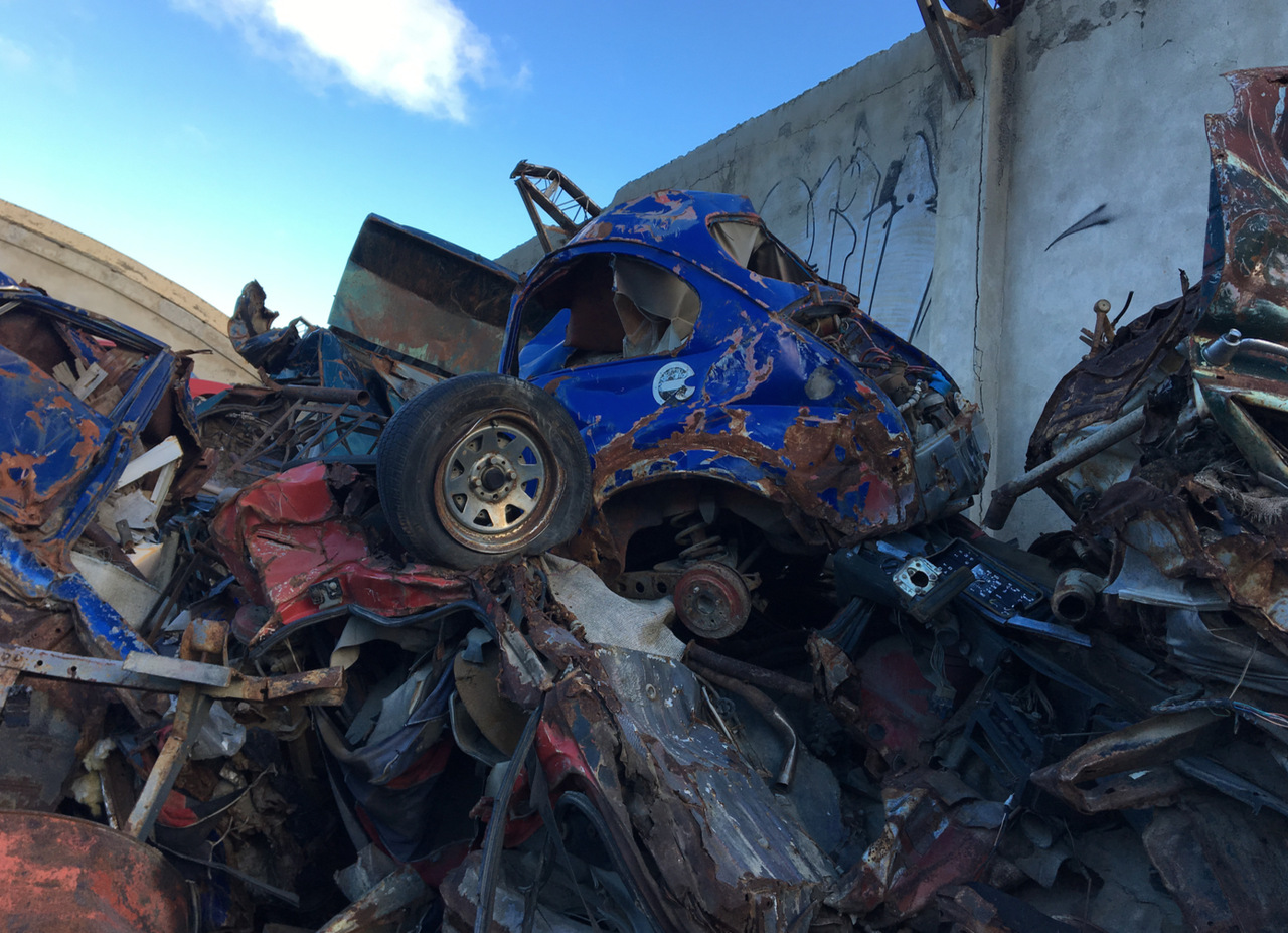Настоящая гора металлолома. Сверху что-то очень напоминающее кузов от Toyota Corolla 90-х годов.