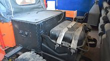 В железном ящике вероятно находится насос для гидравлики. За ним — бензобак.