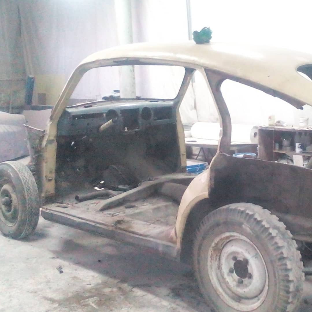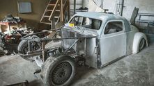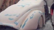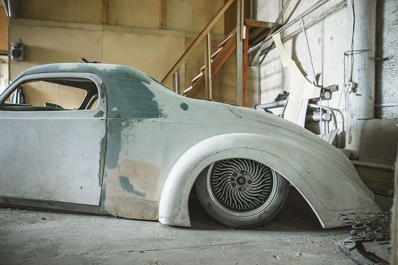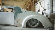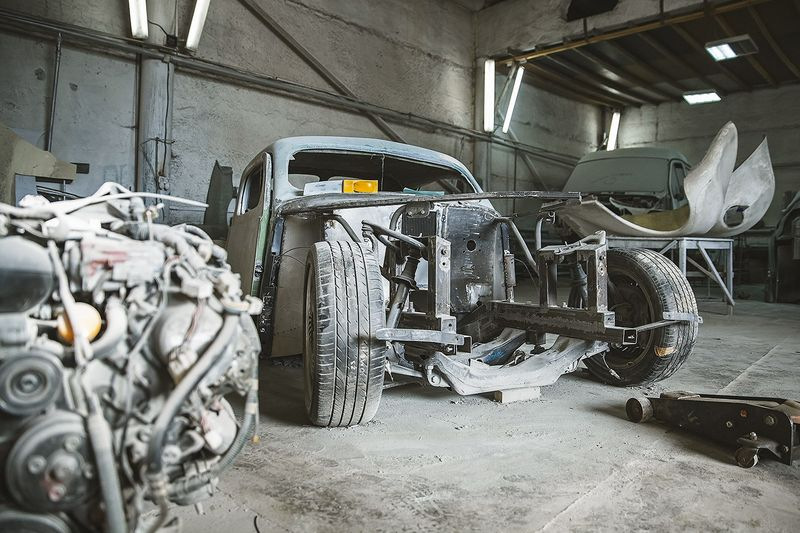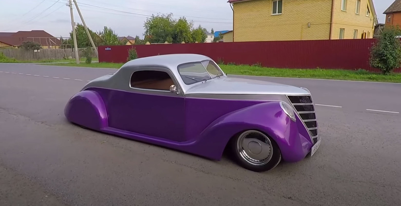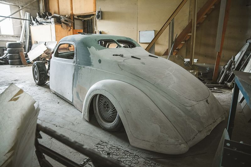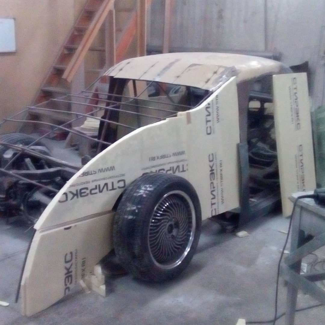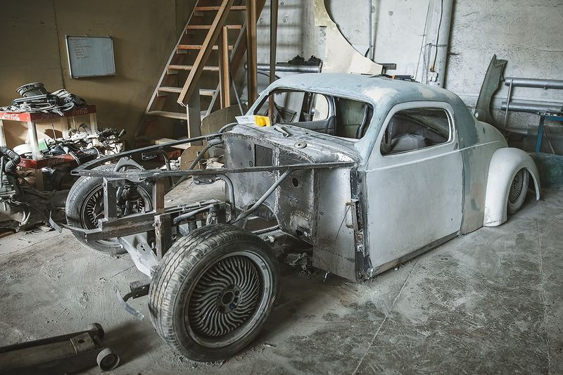 Узнать советский автомобиль ГАЗ-М20 «Победа», который лег в основу кастома, практически невозможно. Исходную модель выдаёт, разве что, характерная форма лобового стекла и часть крыши. Но посмотрите на фотографию ниже процесса изготовления, и тогда всё встанет на свои места.