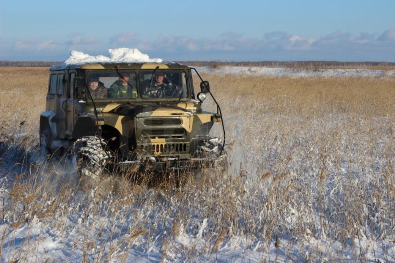 Особенно он может заинтересовать любителей выехать на охоту большой компанией, так как просторный кузов от известной всем "буханки" без проблем сможет уместить в себе 12 человек, а при желании - даже больше. Преградой для него не могут стать ни отсутствие дороги, ни погодные условия, ни время года.