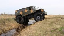 Как утверждает владелец автомобиля, это уже четвёртая реинкарнация этого гиганта, собранная с учётом всех предыдущих ошибок. Да и фотографии, на которых данная самоделка штурмует водоём, поднимая огромные брызги, или выбирается из болота, не дают усомниться во внедорожных способностях этого вездехода.