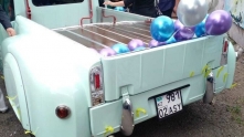 Передняя часть автомобиля стилизована под ГАЗ М-20, однако большая часть кузовных элементов выглядит изготовленной вручную.