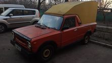 Но на этом трансформация автомобиля не заканчивается. Грузовой отсек сверху был накрыт высоченным кунгом, сделанным вручную из металла. Он смотрится тут совершенно ужасно, словно какое-то инородное тело. Интересно, что огромная задняя дверь с прямоугольным окном открывается не вбок, а на верхних петлях. Не особо удобно.