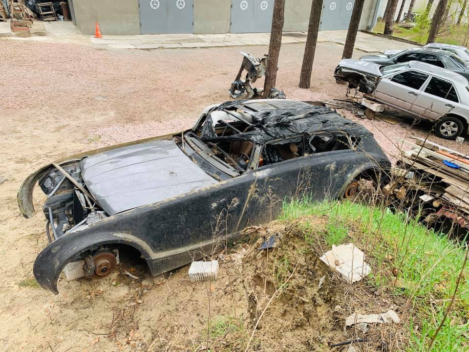 Незавершенный кузов автомобиля стоит на кирпичах брошенным в Вышгородском лесу. Предполагается, что у заказчика закончились средства на оплату работ мастеров, либо же клиент просто потерял интерес к проекту, осознав объем работ, который еще предстоит сделать.