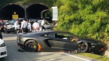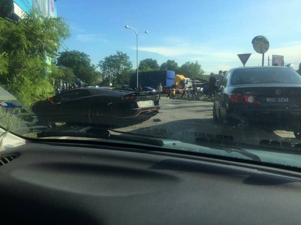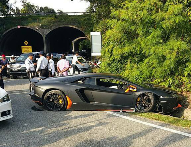 На этой неделе матовый черный Lamborghini Aventador получил сильные повреждения при дорожном столкновении в Малайзии с участием двух других автомобилей.