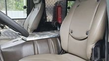 В салоне выполнена тепло- и шумоизоляция, а стены, пол и потолок отделаны алюминиевыми панелями. Для заднего ряда был изготовлен на заказ раскладной диван. Спереди установили новые кресла SMART. Все сиденья обшиты экокожей кремового цвета. Кроме того, были заменены штатные окна на современные слайдеры, а руль — на эргономичный Bremach. И как вишенка на торте — диодная подсветка салона. Все изменения внесены в ПТС.