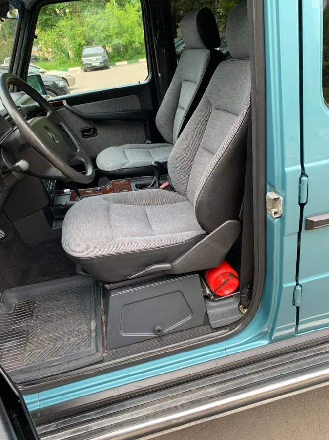Но, как оказалось, в ФСО использовались и другие Mercedes-Benz G-класса. Некоторые из них практически не отличались от серийных. Например, вот этот G300 1994 года выпуска с кузовом цвета морской волны, который в настоящее время продают в Москве за 2,4 миллиона рублей.
