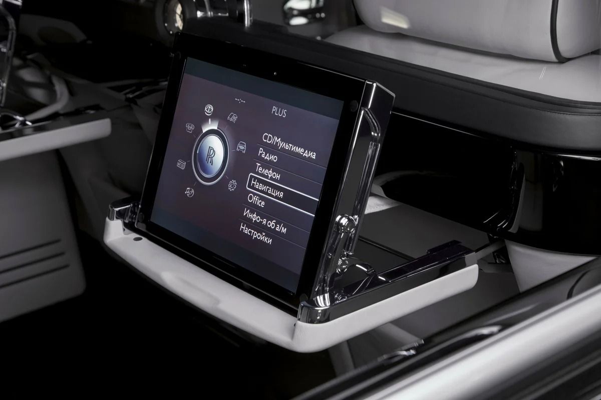 Кроме этого, сзади установлены раздельные кресла и выдвижные столики, в которые вмонтированы мультимедийные планшеты. Имеются и встроенные подлокотники с отсеками для бокалов и бутылок. И как «вишенка на торте» — премиальная аудиосистема.