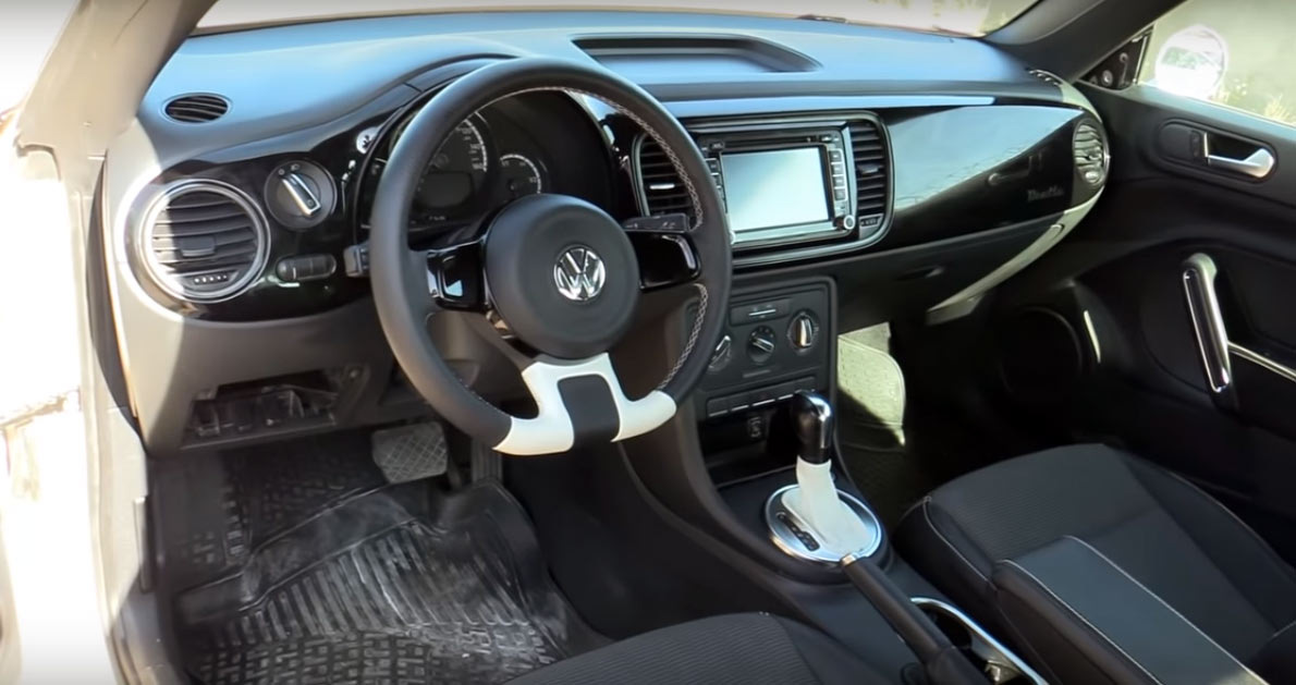Но как только вы открываете дверь и попадаете внутрь вся магия мгновенно растворяется. Салон полностью стоковый и ничем не отличается от тысяч других Volkswagen Beetle.