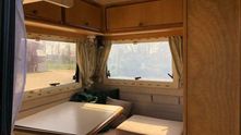 Heku Car Camp — далеко не самый просторный кемпер. Спальное место находится в алькове — специальной аэродинамической нише над крышей автомобиля. Всю заднюю часть жилого модуля занимает диванчик с раскладным столиком. Кроме этого нашлось место для плиты и небольшого холодильника.