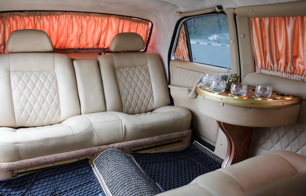 Кузов был удлинен примерно на 1,5 метра самодельной вставкой с огромным тонированным стеклом. По центру кузова также врезали люк — еще один привычный аттрибут для всех лимузинов.