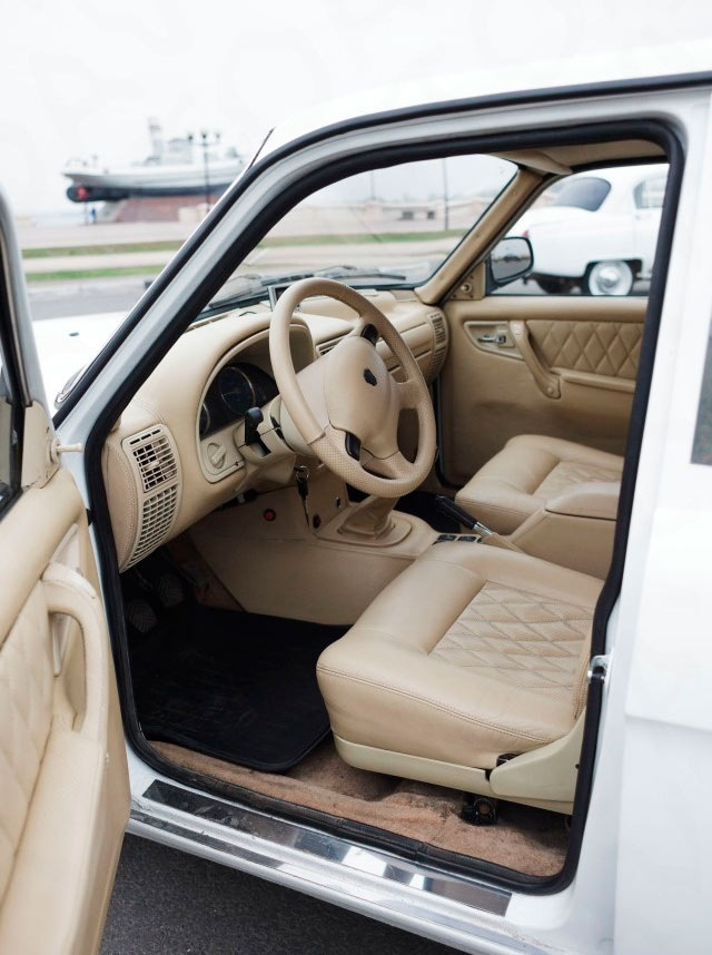 Любопытно, что водительское место также не оставили без дорогих и качественных материалов. Тут используется та же кожа кремового цвета, а все пластиковые детали либо обшиты кожей, либо окрашены в единый с другими элементами салона кремовый цвет. Смотрится это просто потрясающе. Можно с уверенностью сказать, что перед нами один из самых приятных «волговских» салонов, что мы видели.
