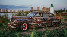 Давайте я сразу отработаю негатив, который мог возникнуть у вас в голове при виде столь нелепого «тюнинга» классического советского лимузина ГАЗ М12 «ЗИМ». Вы должны понимать, что этот автомобиль простоял под открытым небом более 20 лет и находился в таком ужасном состоянии, что сквозь него, в буквальном смысле этого слова, росли деревья.