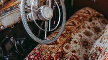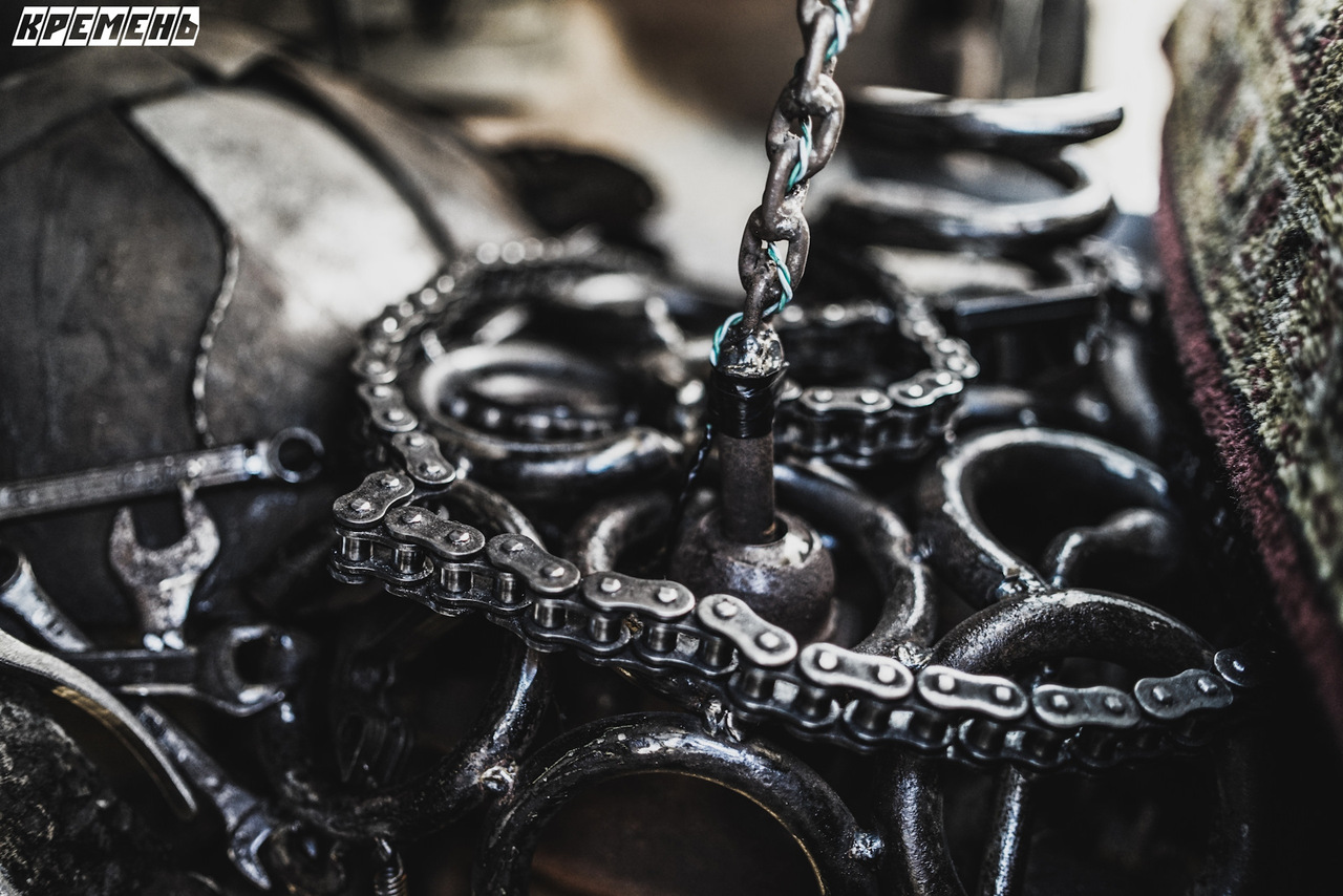 Над интерьером также была проведена отличная работа. На диваны сшили особые накидки из старых советских ковров. Руль получил тканевую оплетку, а рычаг переключения передач сделан из цепи и металлической черепушки.