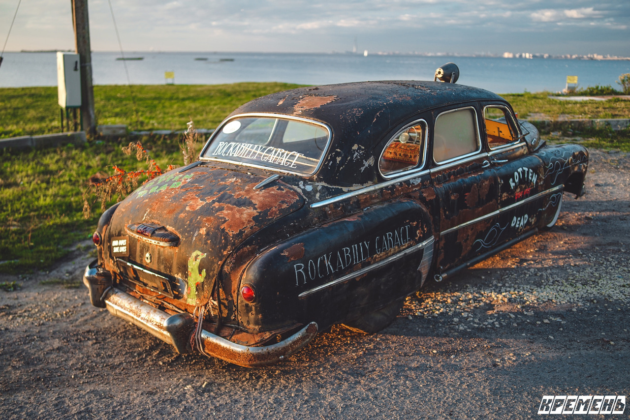 Вот и получалось, что единственный путь ему — на базу приёма металлолома. Но, к счастью, у него появился второй шанс. Автомобиль обнаружили и выкупили ребята из питерской мастерской Rockabillygarage и превратили его в нечто очень нестандартное для нашей страны. Нет, это не рэтрод, как можно было подумать. Стиль, в котором выполнен проект называется Raggare.