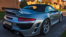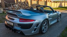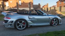 Это оригинальный Porsche 911 Attack C с кузовом кабриолет, созданный на базе Porsche 911 Turbo Cabrio. Боди-кит включает большое количество легких карбоновых деталей, кардинально изменяющих внешний вид машины.