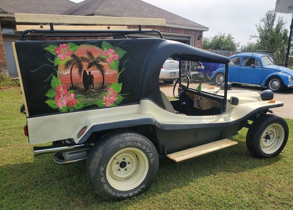 Второй багги — экземпляр с кузовом оранжевого цвета, построенный на базе Volkswagen Beetle. Он оснащён колёсами American Racing, простой дугой безопасности и вздёрнутой вверх выхлопной трубой. Кузов, кажется, сохранился в отличном состоянии, как и чёрные сиденья с кожаной отделкой.