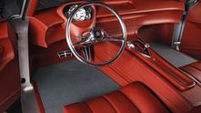 Интерьер кастома был вдохновлен оригинальным Chevrolet 1957 года, но он полностью перестроен. Тут появились ковшеобразные сиденья ручной работы, специальная напольная консоль, одноразовые датчики и рулевое колесо Evod.