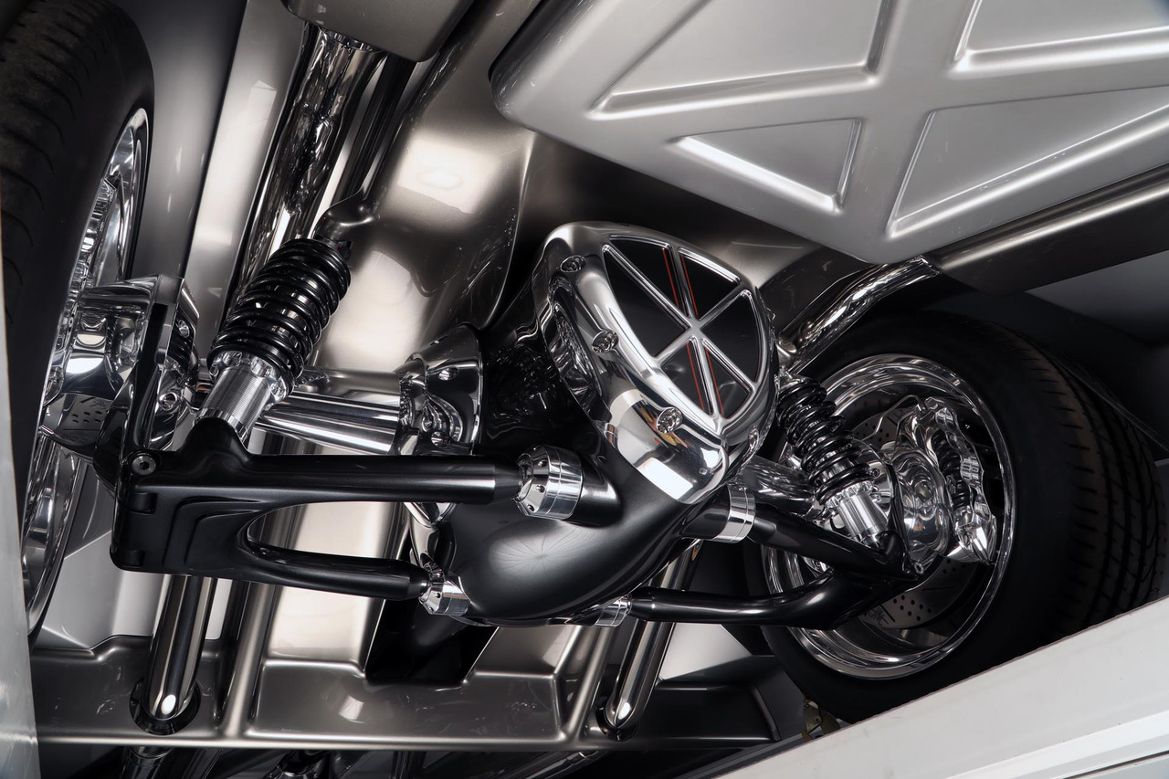 Помимо невероятно крутого внешнего вида, кастом получил очень любопытную техническую начинку. Под капотом обосновался 8,4-литровый двигатель Chevy V8, доработанный мастерской Nelson Racing. Он оснащен двумя турбонагнетателями, которые довели его мощность до 1000 л.с. Он работает в паре с трехступенчатой автоматической коробкой передач Bowler TH400. А еще тут установлена независимая передняя и задняя подвески, и гидравлические дисковые тормоза на всех четырех колесах.