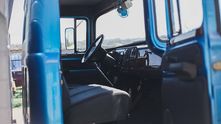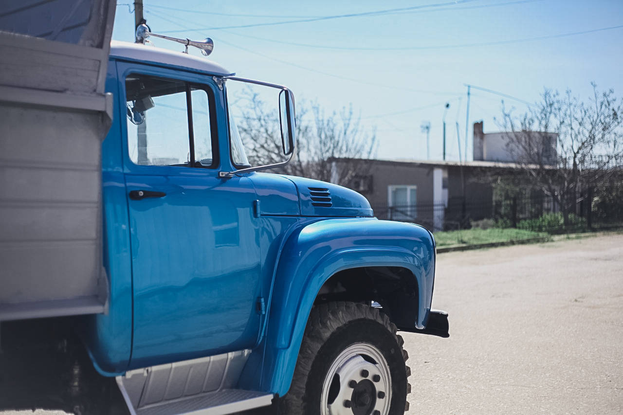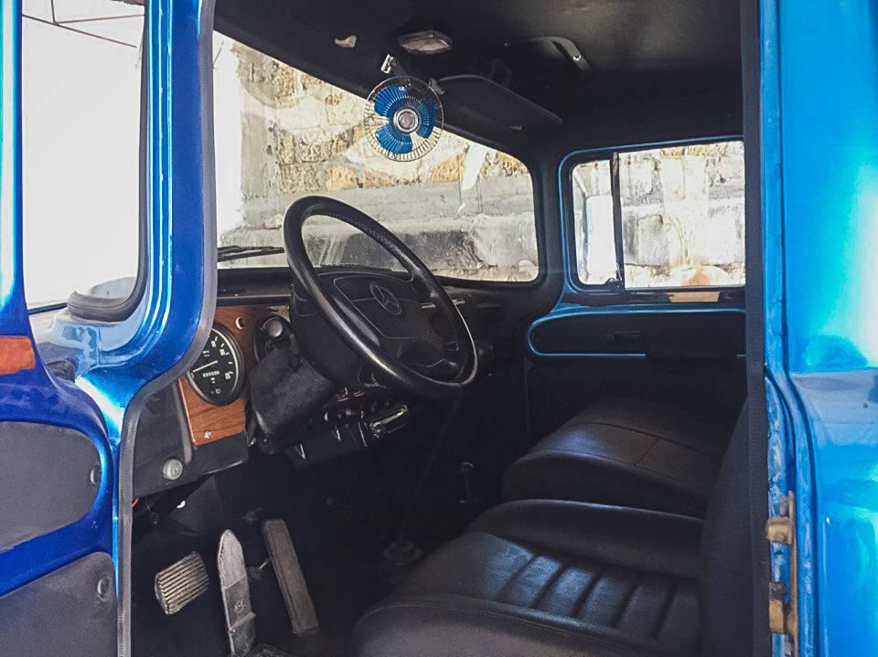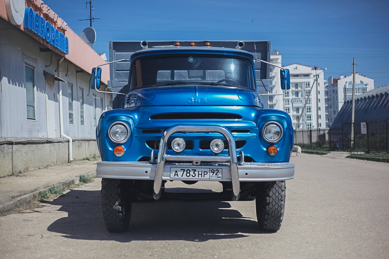 Конкретно этот экземпляр с кабиной, окрашенной в синий металлик — из Севастополя. Владелец хорошенько постарался, чтобы сделать его уникальным и чуть более комфортабельным. Например, тут есть электроподъемники, электродворники, сидение с электроприводом, а также электронное зажигание.