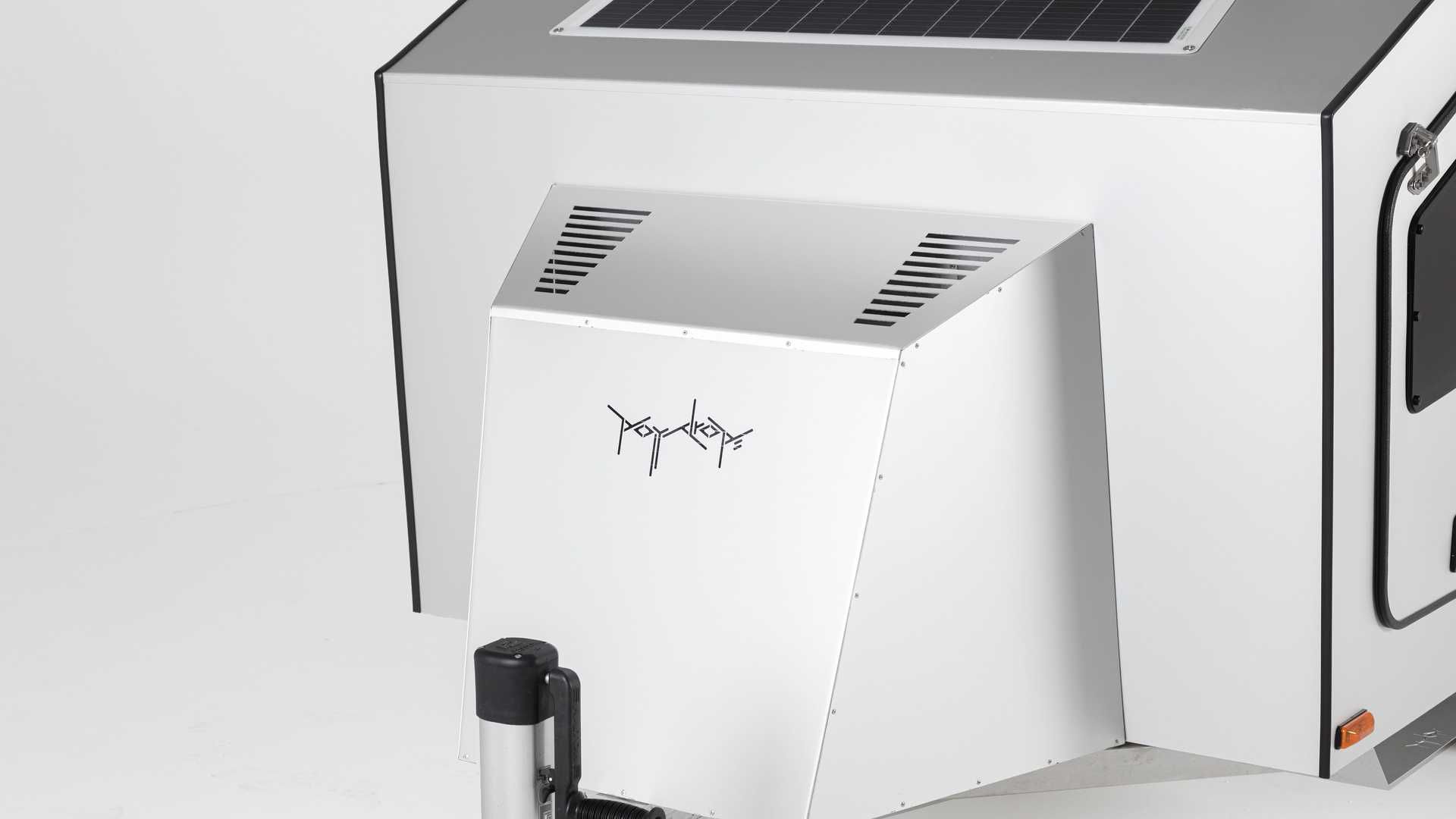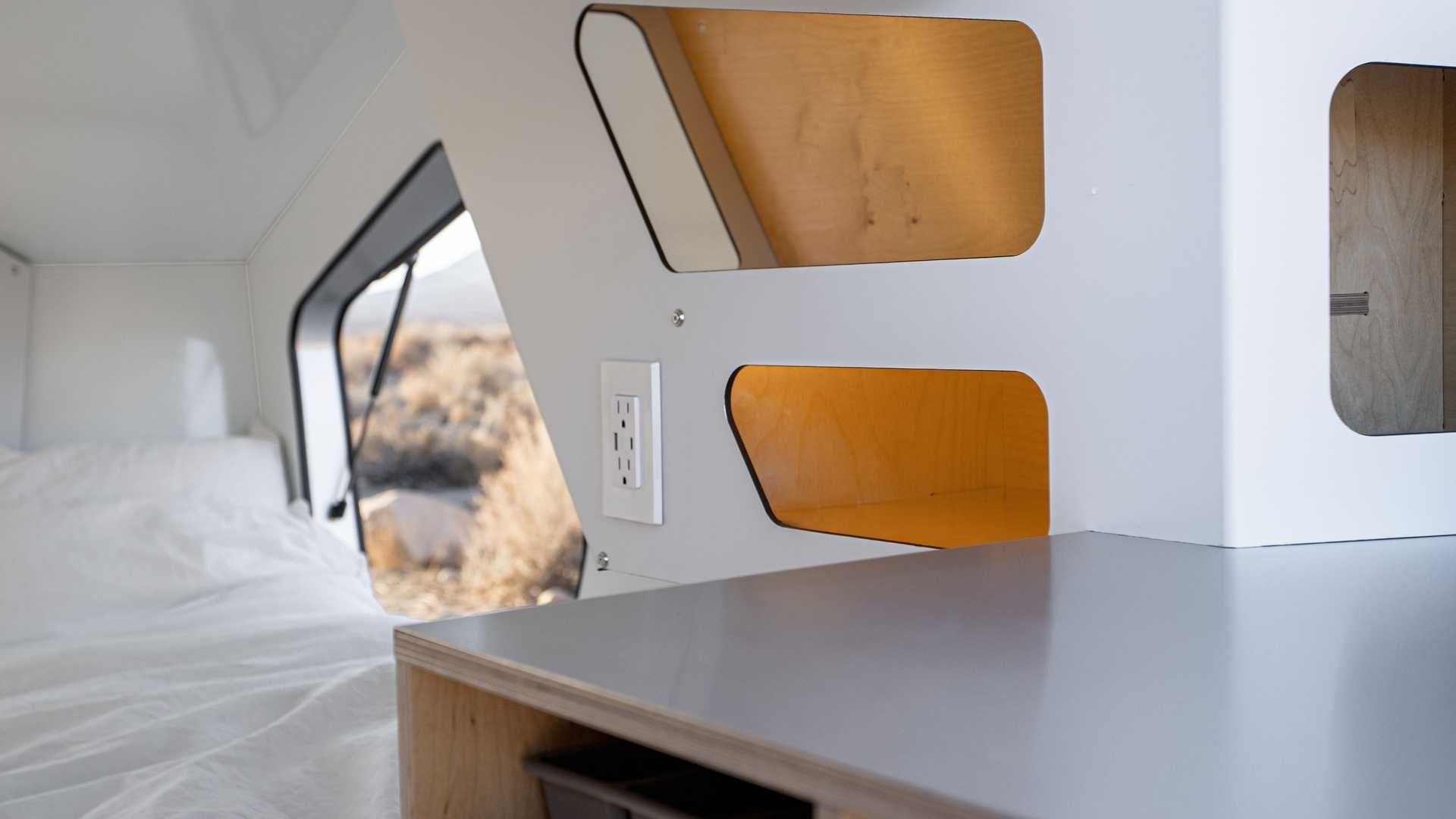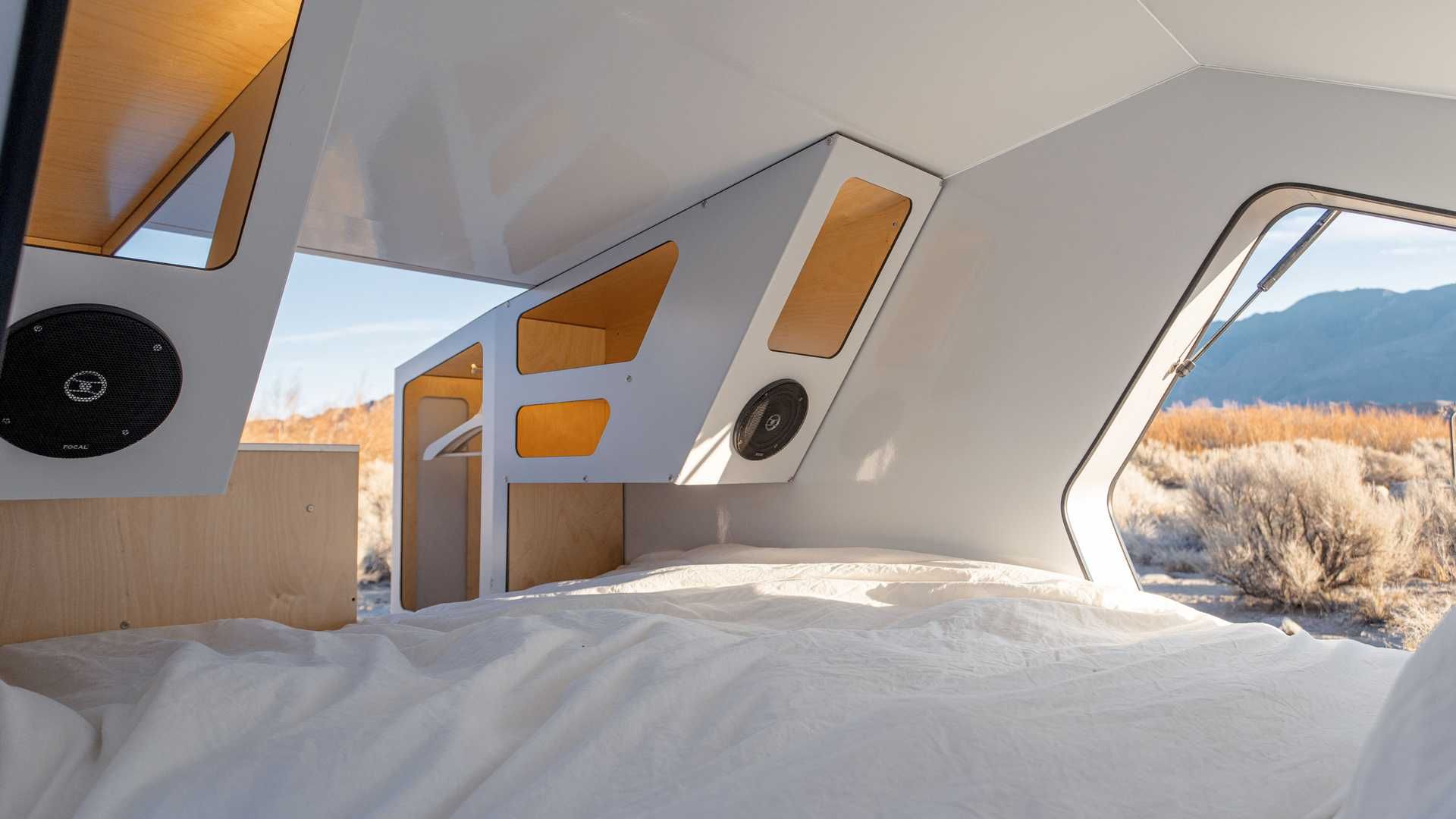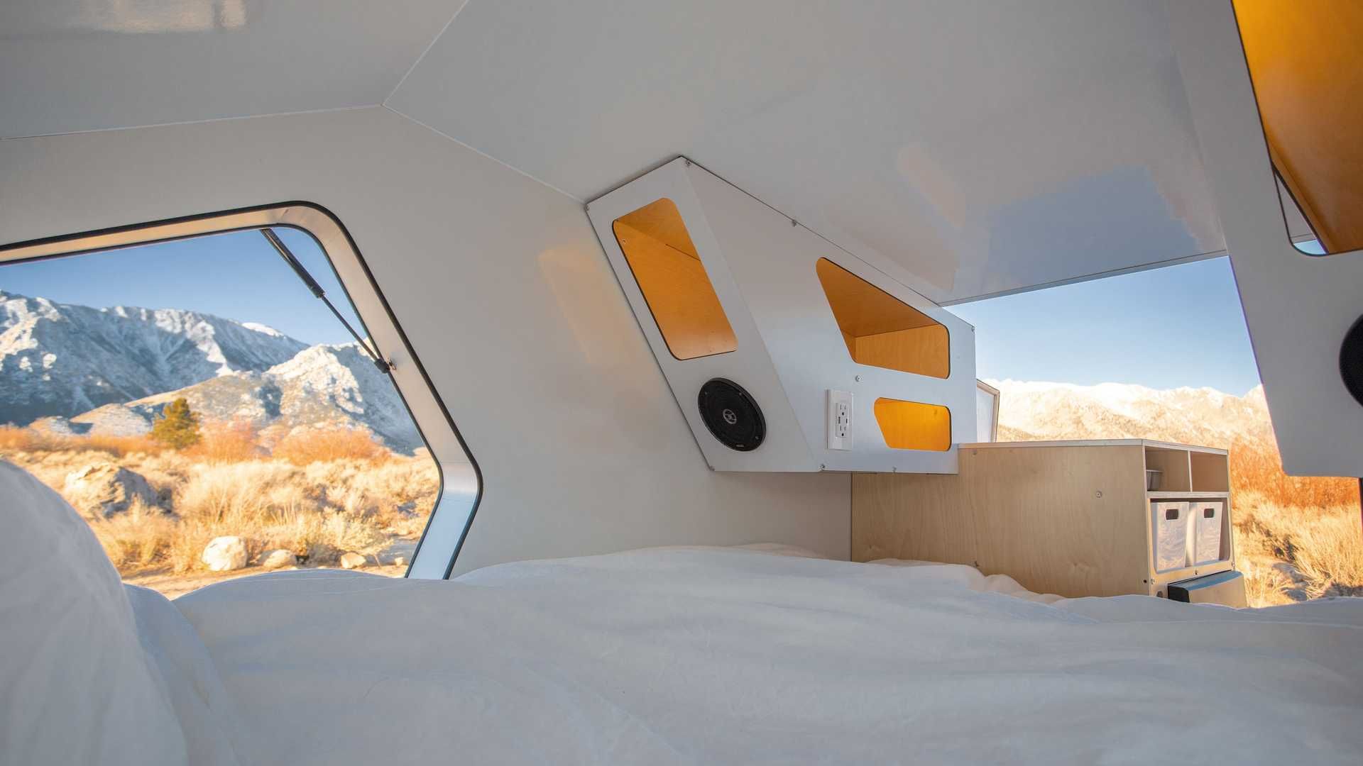 В дизайне кемпера очевидно угадывается влияние Tesla Cybertruck: та же угловатость, тот же строгий минимализм. При этом днище у прицепа полностью плоское, а в передней части есть специальная надстройка, которая снижает турбулентность во время движения между кемпером и автомобилем.