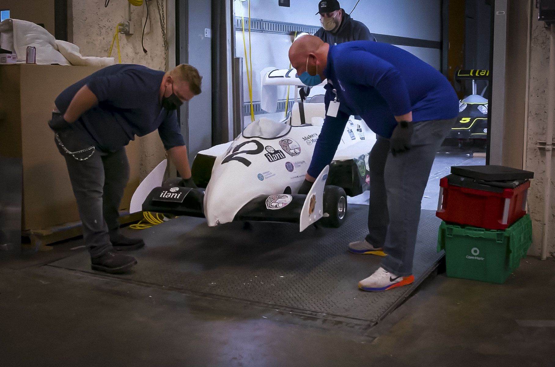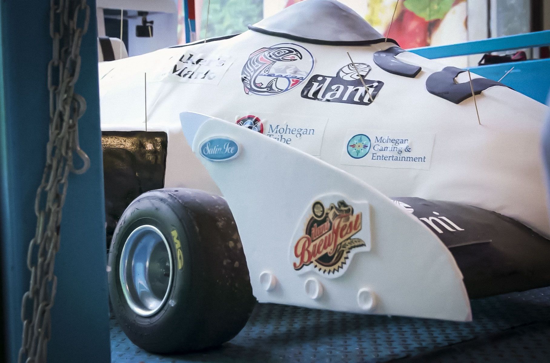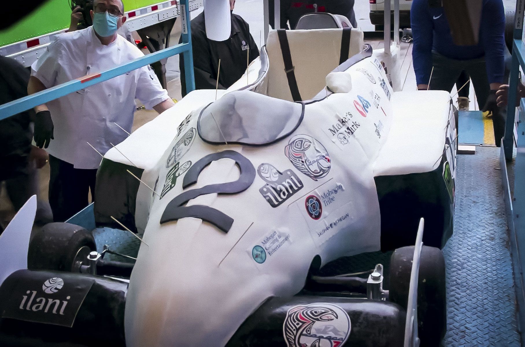 Так, белый болид, на изготовление которого ушло 139 кусков торта, стал репликой машины, на которой в 1991 году выступал в серии Indicar пилот Майкл Андретти. А черный, состоящий из 145 кусков торта — копией болида его отца Марио.