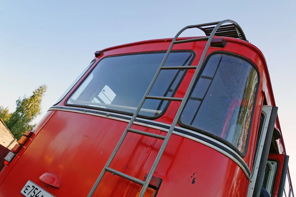 Автобус 1990 года выпуска был куплен текущим владельцем в Ульяновске, где он служил на местной телестудии, в гараже ГТРК "Волга". Он был вспомогательной машиной к передвижным телестанциям "Магнолия" на шасси грузовиков КамАЗ.