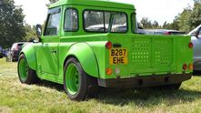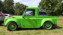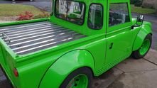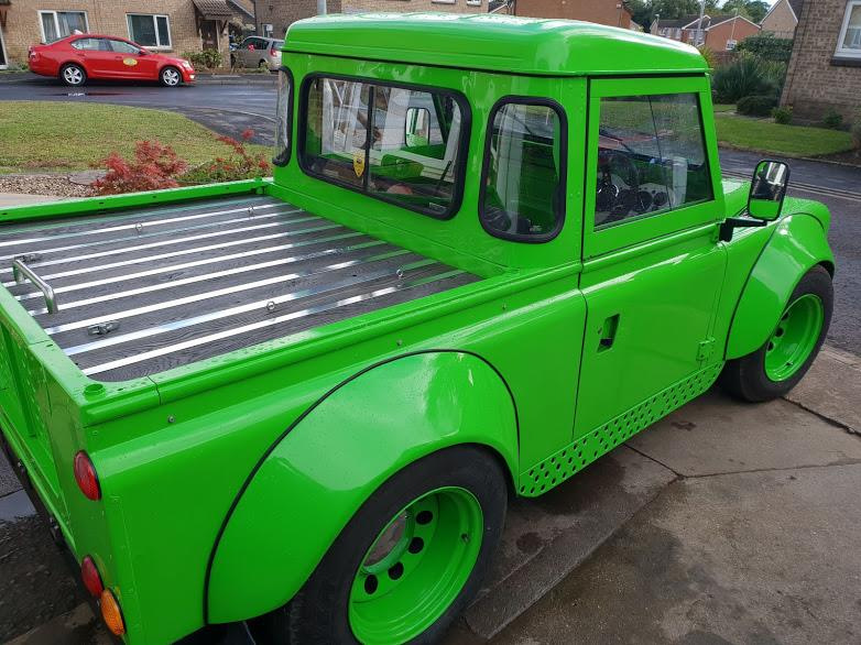 Получилось довольно забавно. Взяв за основу Land Rover Defender 90 в версии с кузовом пикап ему изменили раму и подвески, чтобы значительно уменьшить дорожный просвет. В итоге теперь кузов стал на 440 мм ниже, чем у стандартного внедорожника. Установив более широкие колесные диски пришлось переделать арки, поставив самодельные расширители.