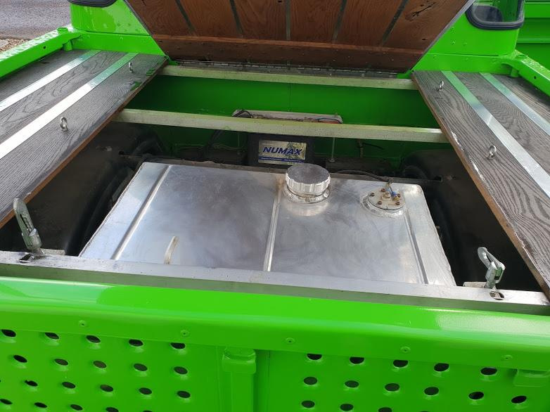 Изменения конструкции не оставили места в грузовом отсеке: под самодельной крышкой из натурального дерева и алюминия теперь скрывается самодельный алюминиевый бензобак.