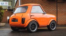 Кузов крохотной машины недавно полностью отреставрировали, а затем покрасили в ярко-оранжевый цвет. И как вишенку на торте добавили кастомному Mini оригинальный выхлоп из нержавеющей стали.