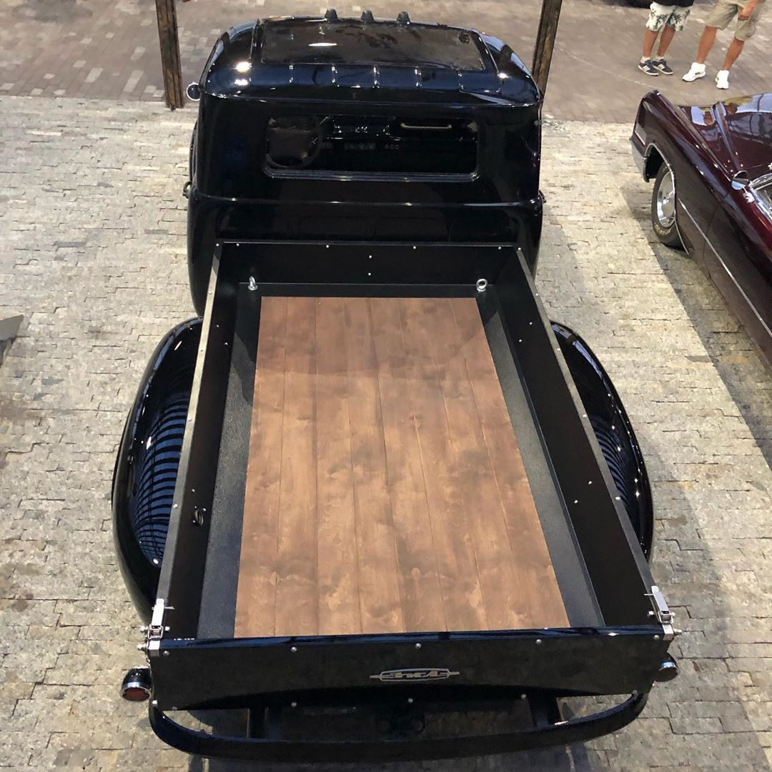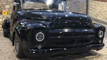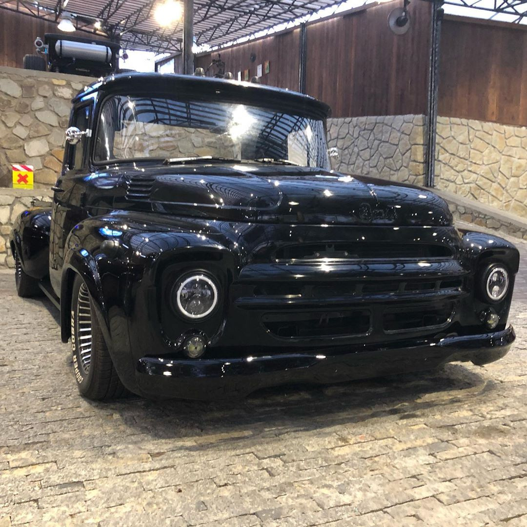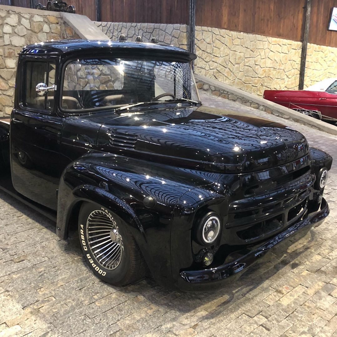 Пикап полностью окрашен в черный цвет, который отлично контрастирует с некоторыми хромированными деталями, вроде ободков передних фар и оригинальных зеркал заднего вида. Передняя оптика — современная, выполненная на основе светодиодов.