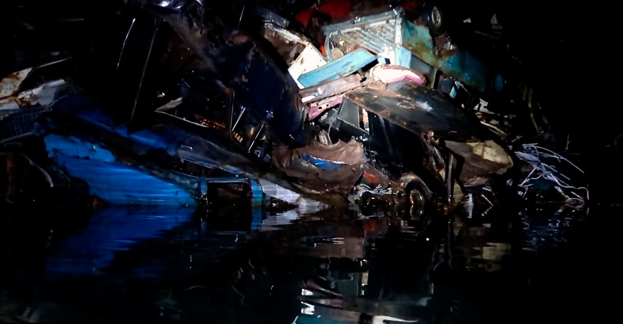Вероятно, этой свалке старых автомобилей уже много лет. Такой необычный способ утилизации отходов был использован местными жителями. Естественно, это незаконно, и без слез на это смотреть нельзя.