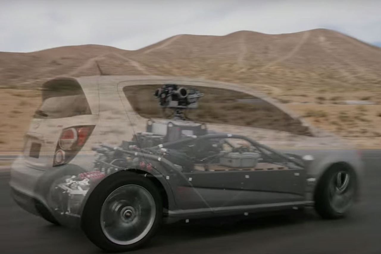 Видите эту безумно странную камеру наверху? Она сканирует всё, что окружает автомобиль, при помощи фотокамер и лазеров для того, чтобы облегчить процесс обработки материала. Благодаря тому, что используется настоящий автомобиль, движущийся по настоящей дороге на настоящих колёсах, всё будет выглядеть довольно реалистично. Мне интересно, камеры используют такой же принцип работы, как у Google Street View, с которыми многие из нас уже сталкивались?