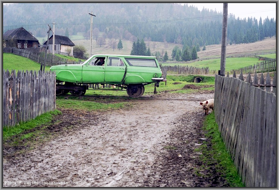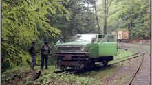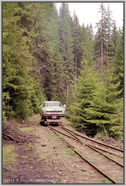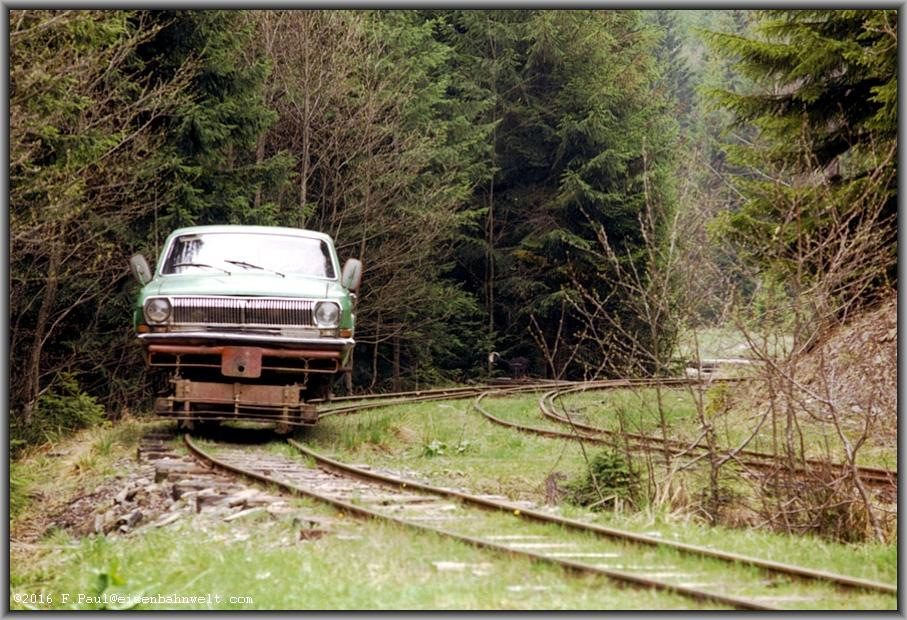 Кстати. в этих местах дрезины с кузовами советских автомобилей, как ГАЗ-12, ГАЗ-13, ГАЗ-20, ГАЗ-21, ГАЗ-22, ГАЗ-24, были довольно распространённым явлением, и некоторые сохранились до сих пор.