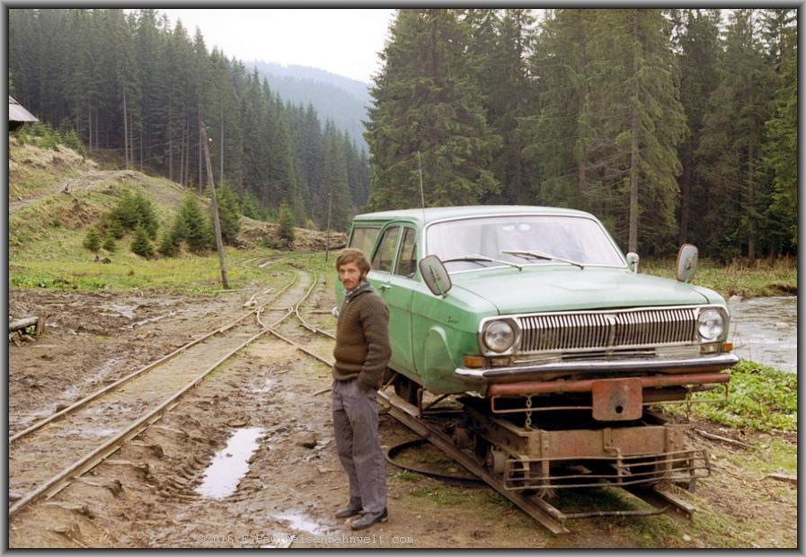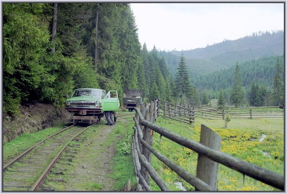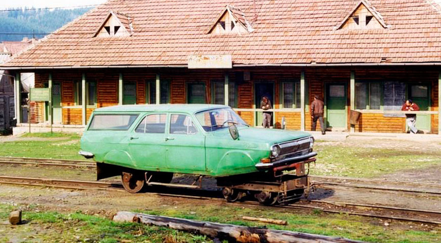 Информацию о необычном ГАЗ-24 «Волга», который был переоборудован в железнодорожную дрезину, опубликовали немецкие журналисты. В 1991 году им посчастливилось проехать на этом транспортном средстве сквозь горы региона Трансильвания в Румынии.