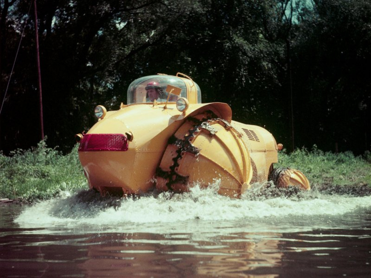 Благодаря своим огромным железным передним колесам диаметром в 2 метра, машина держалась на плаву и преодолевала любые труднопроходимые места. Угол опрокидываемости у этой махины составлял 75 градусов.