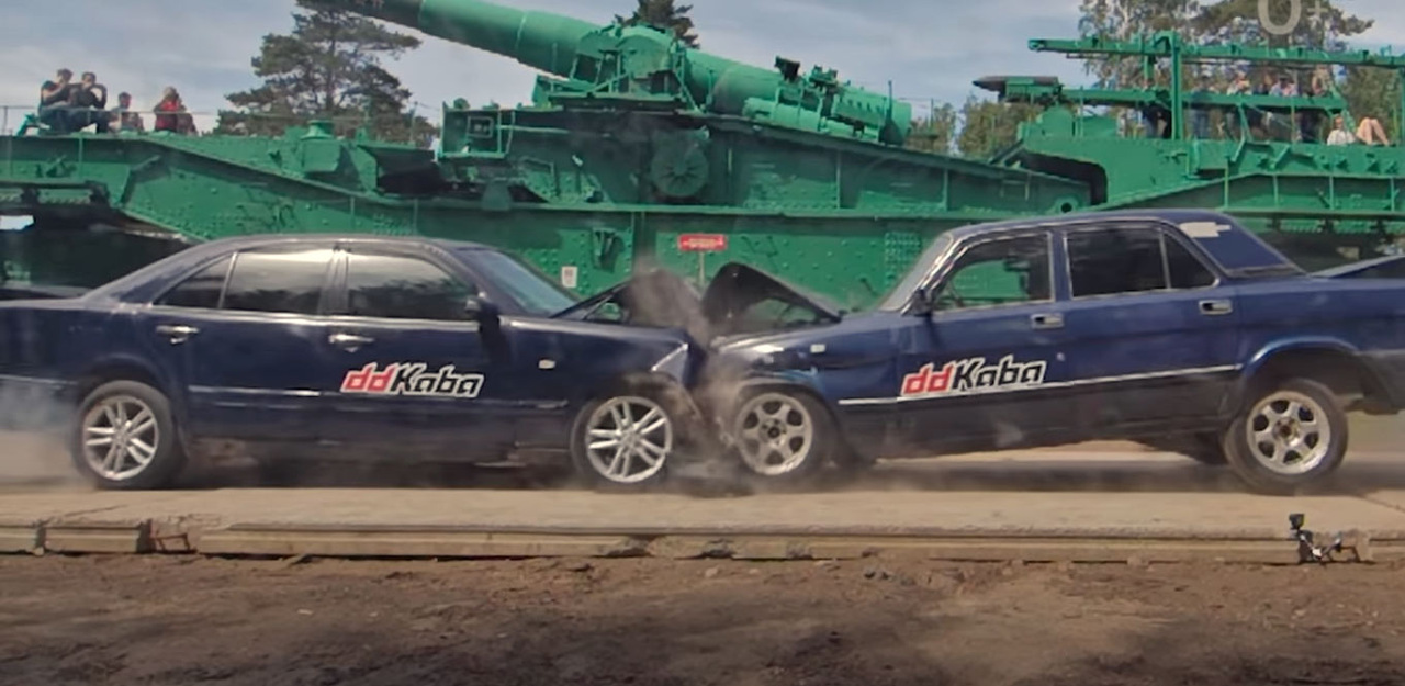На Youtube-канала ddKaba вышел очередной выпуск серии видеороликов «Лоб в лоб». На этот раз соперниками по краш-тесту стали Mercedes-Benz E-класса и ГАЗ-3110 «Волга».