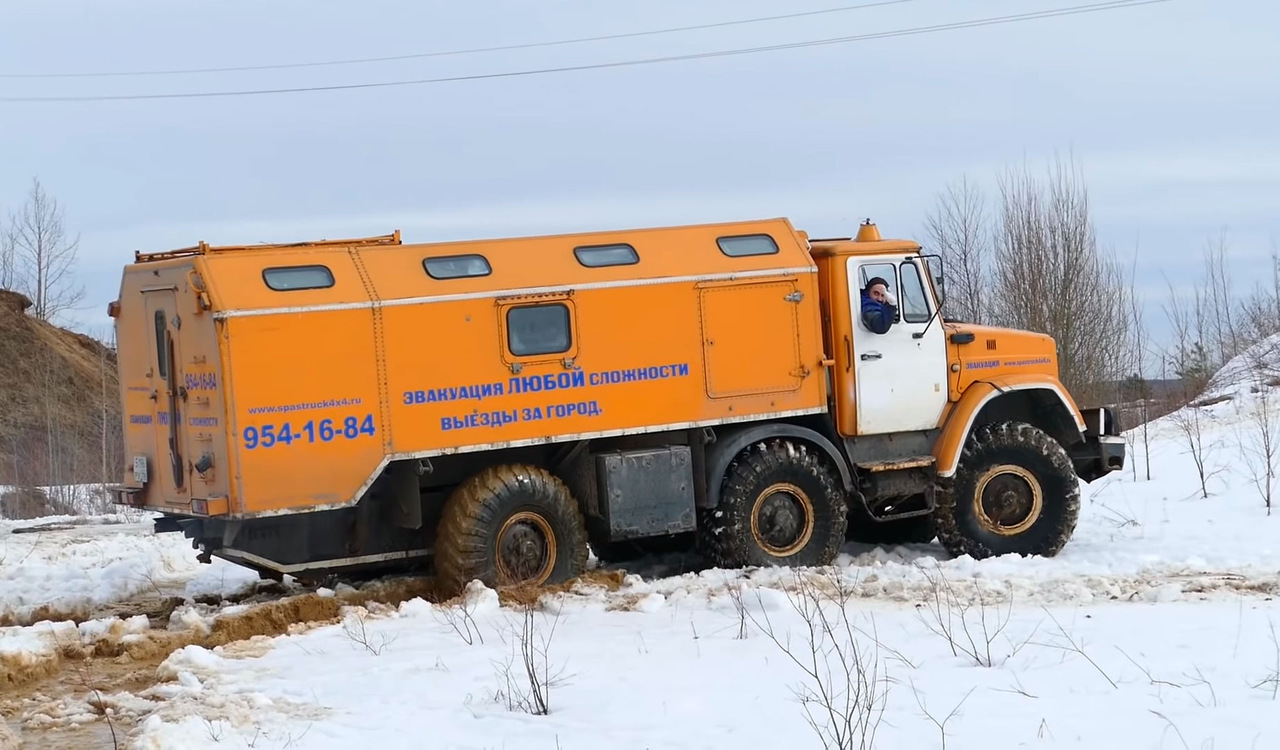 Видеоблогеры с канала Combat Crew провели внедорожные испытания уникального внедорожного грузовика ЗИЛ-4972 — потомка тех самых амфибий «Синяя Птица», которые занимались поиском и эвакуацией приземлившихся космонавтов. Этот оранжевый ЗИЛ тоже занимается эвакуацией, но не космонавтов, а сломавшейся или застрявшей в глухом бездорожье техники.