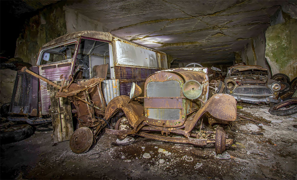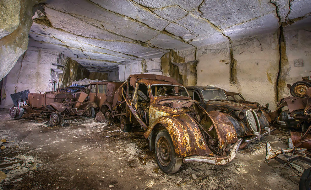 Удивительные фотографии показывают ряды автомобилей, аккуратно припаркованных в подземном укрытии. Винсент рассказал, что с момента своего открытия владелец карьера вывозил некоторые машины для продажи на аукционе, но многие их них оказались слишком хрупкими для перемещения. Они все еще остаются в шахте.