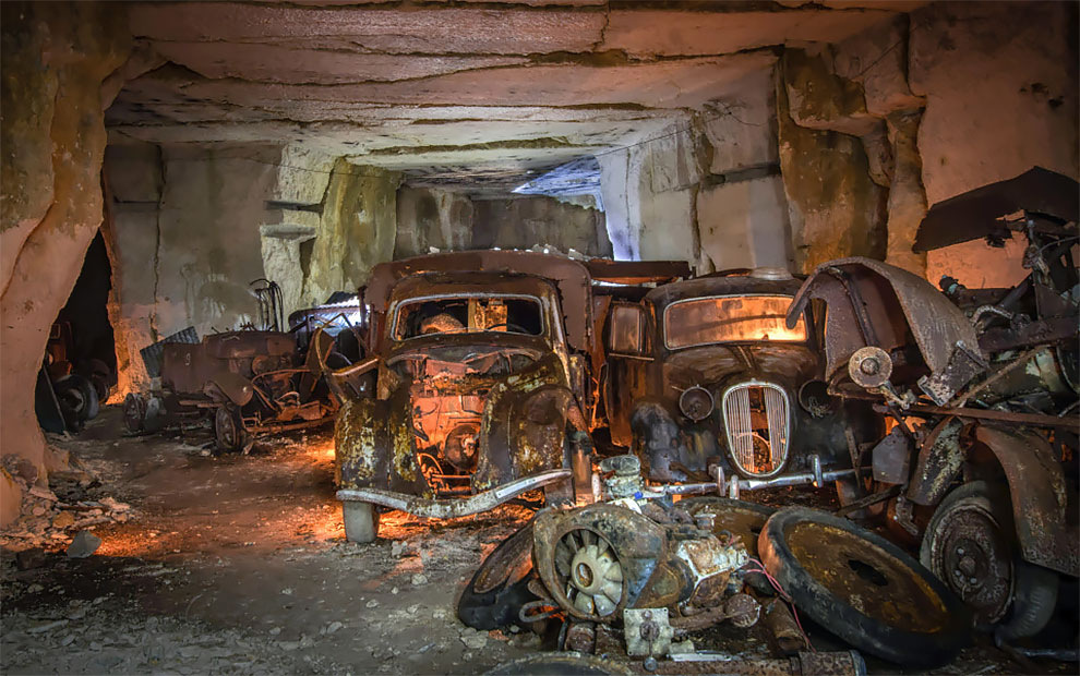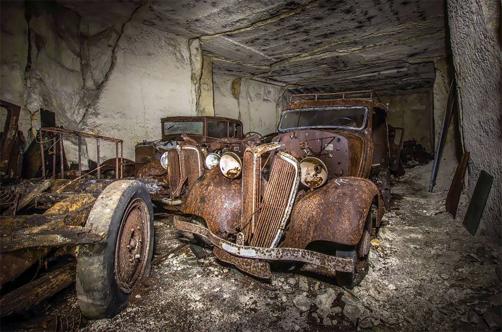 В течение почти 80 лет эти машины были спрятаны под землей в заброшенной шахте во Франции. В 2016 году их обнаружил бельгийский учитель физкультуры Винсент Мишель. Автомобили были помещены туда во время Второй мировой войны с надеждой достать их после её окончания. Но им так и суждено было остаться под землей.