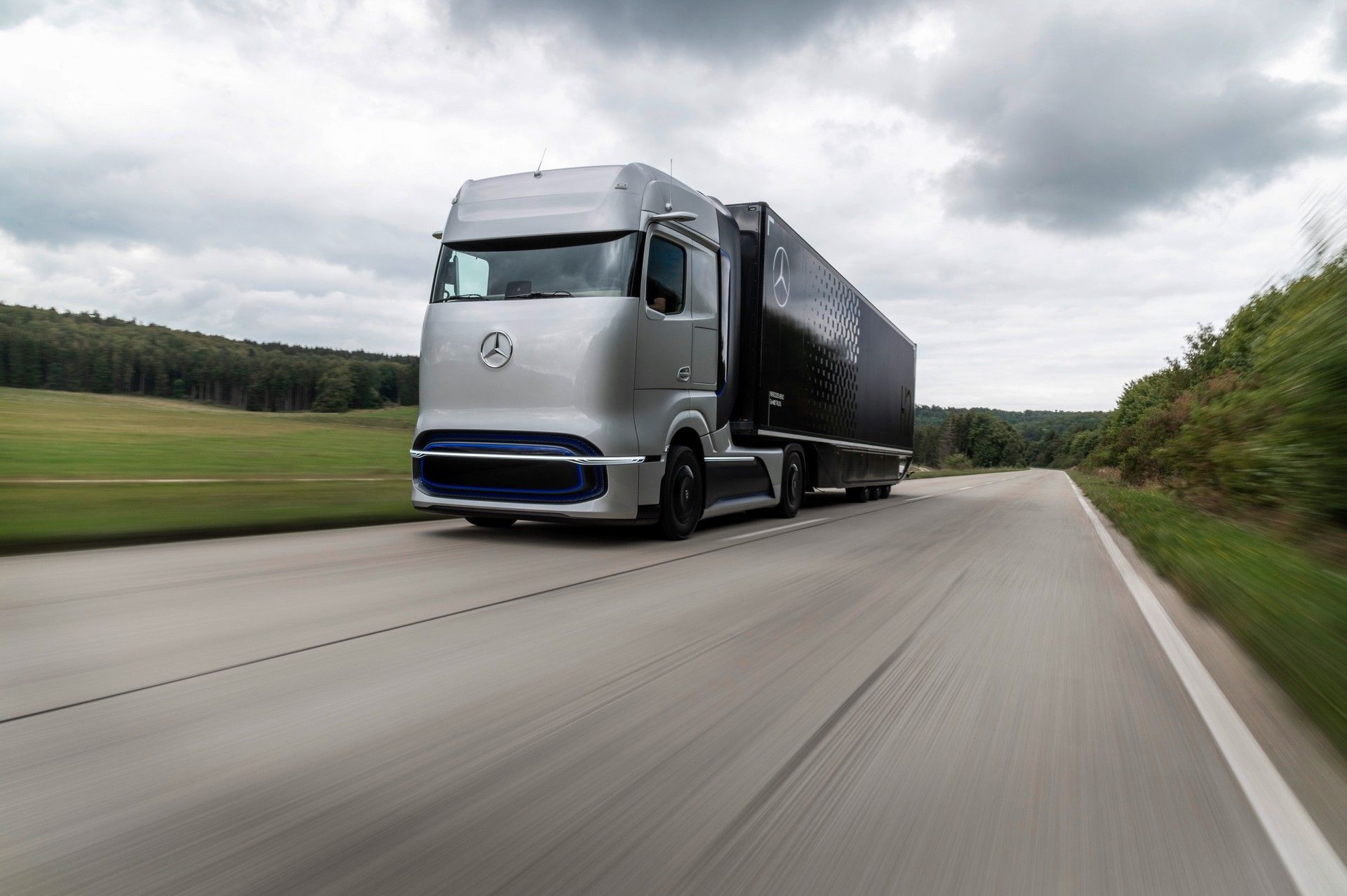 Daimler хочет исправить это, поэтому на мероприятии концерн показал концептуальный Mercedes-Benz GenH2, представляющий собой дальнемагистральный седельный тягач на топливных элементах.