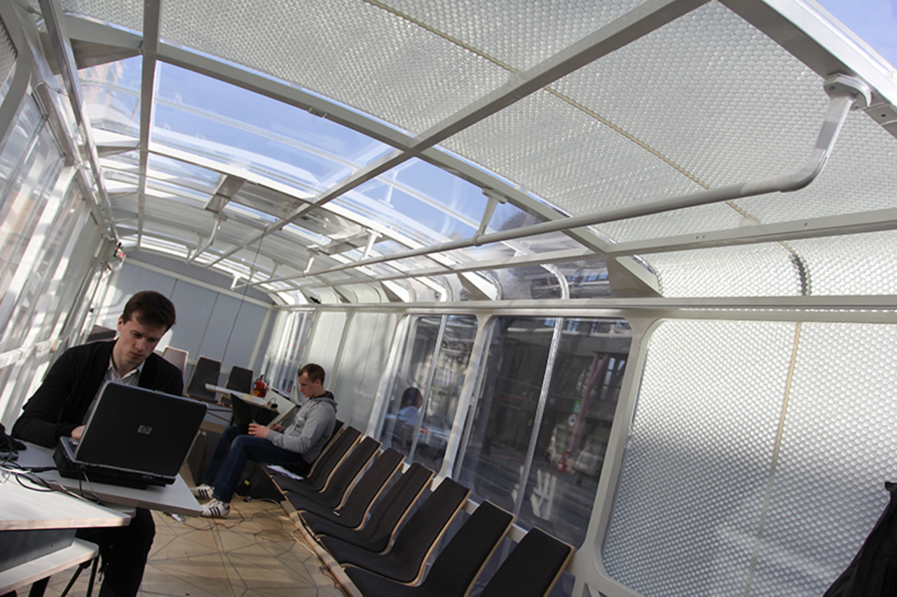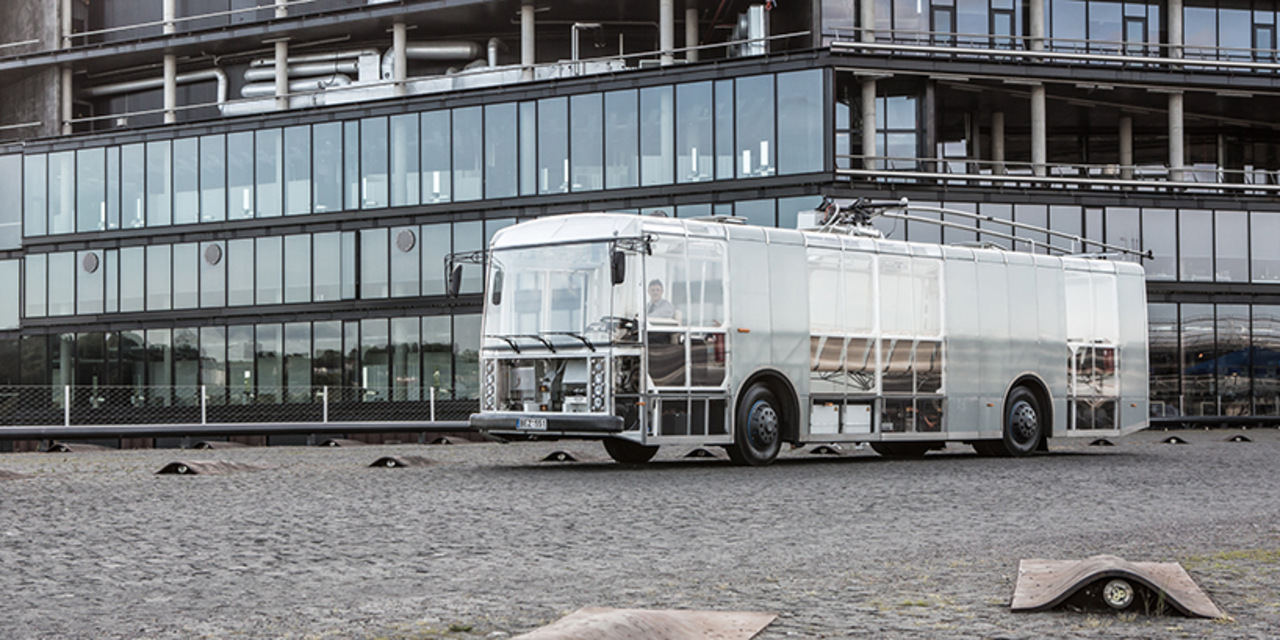 Первым шагом был полный пересмотр троллейбуса Skoda TR14 и превращение его в современный общественный транспорт, способный двигаться даже отключившись от линии электропередачи. Его значительно облегчили и сделали прозрачным, благодаря чему в салоне стало значительно светлее и уютнее. Установленные в салоне дисплеи отображают различную информацию об окружающей среде.