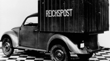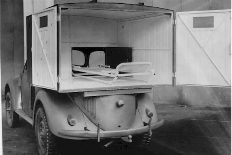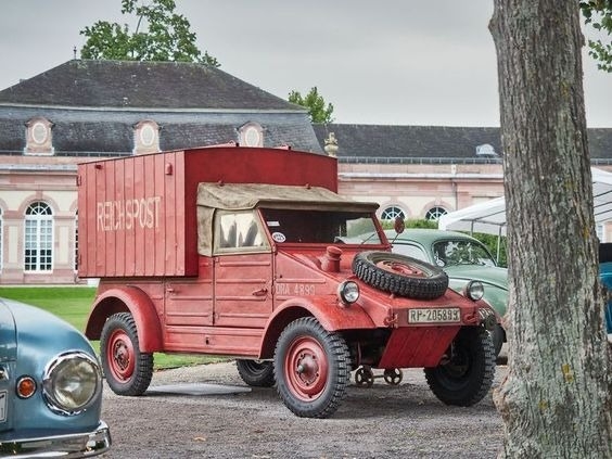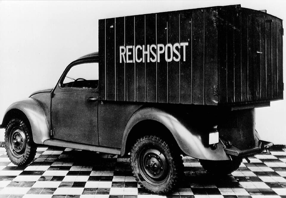 Именно этот тип грузовичка — Beetle с коробом на спине — ближе всего по духу к странному Type 100. По сути, это тот же самый автомобиль с кузовом Beetle на шасси Kübelwagen, где кузов обрезали сразу за дверями, чтобы установить гофрированный грузовой отсек, а двигатель размещался под ним, как это видно на фургоне Reichspost.